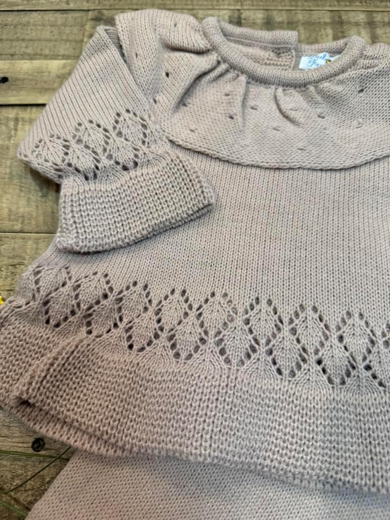 Wrap your little one in timeless style with this soft knitted 3-piece set. Featuring a patterned sweater, matching pants, and cozy hat, it’s perfect for chilly days, special moments, or sweet photo memories.