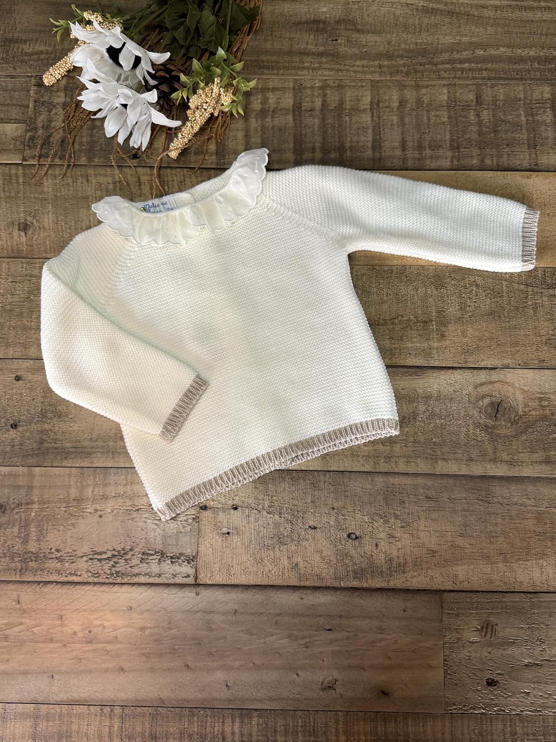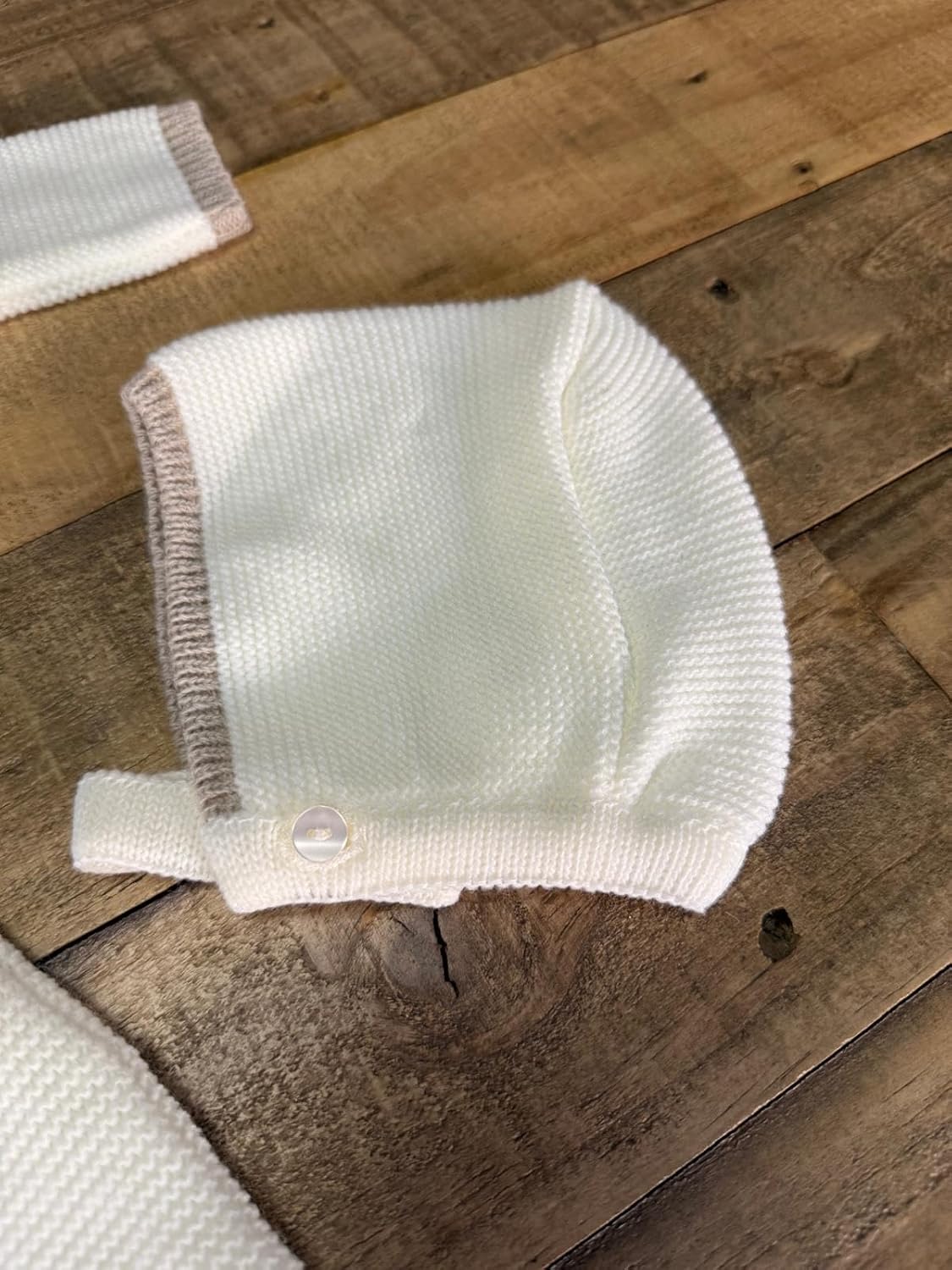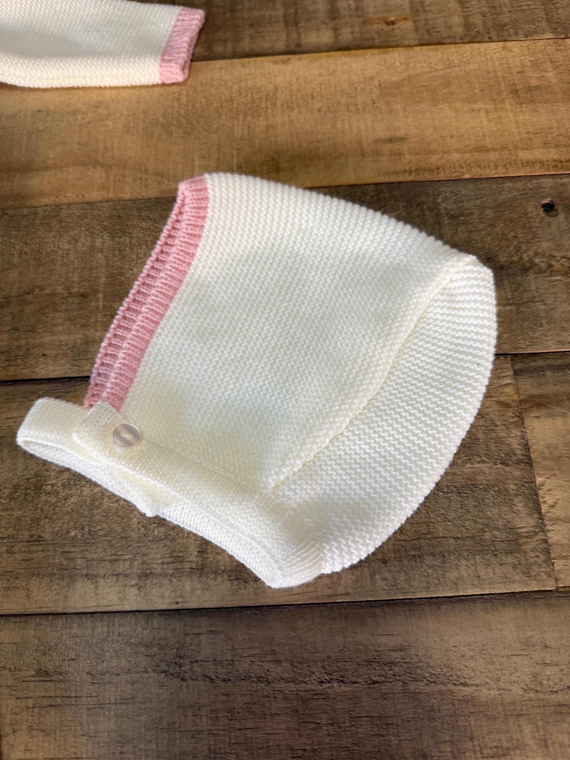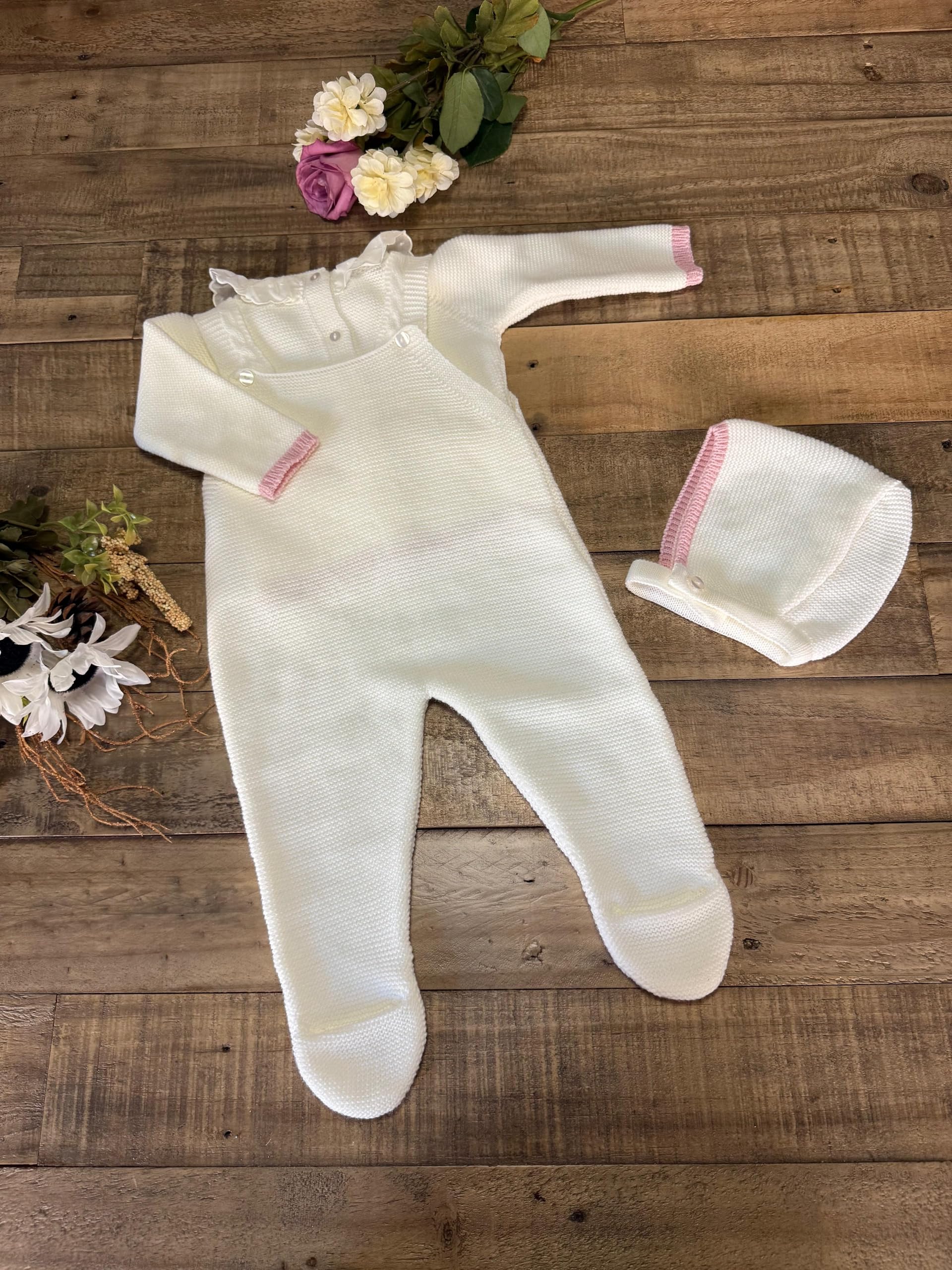 Timeless and elegant, this soft knitted romper with delicate satin bows and matching hat keeps your baby cozy and stylish for any occasion.
