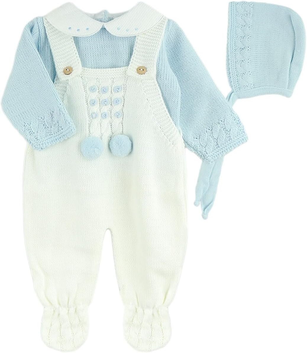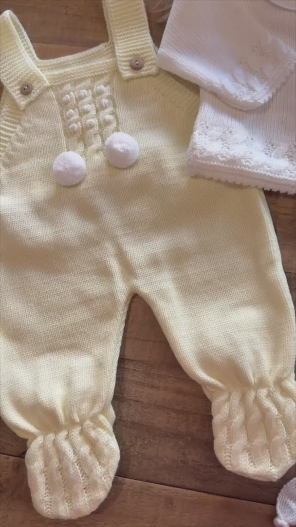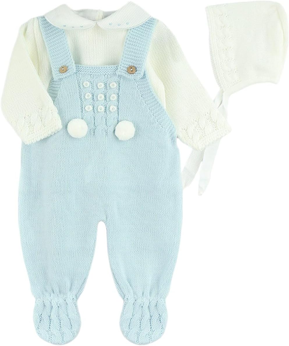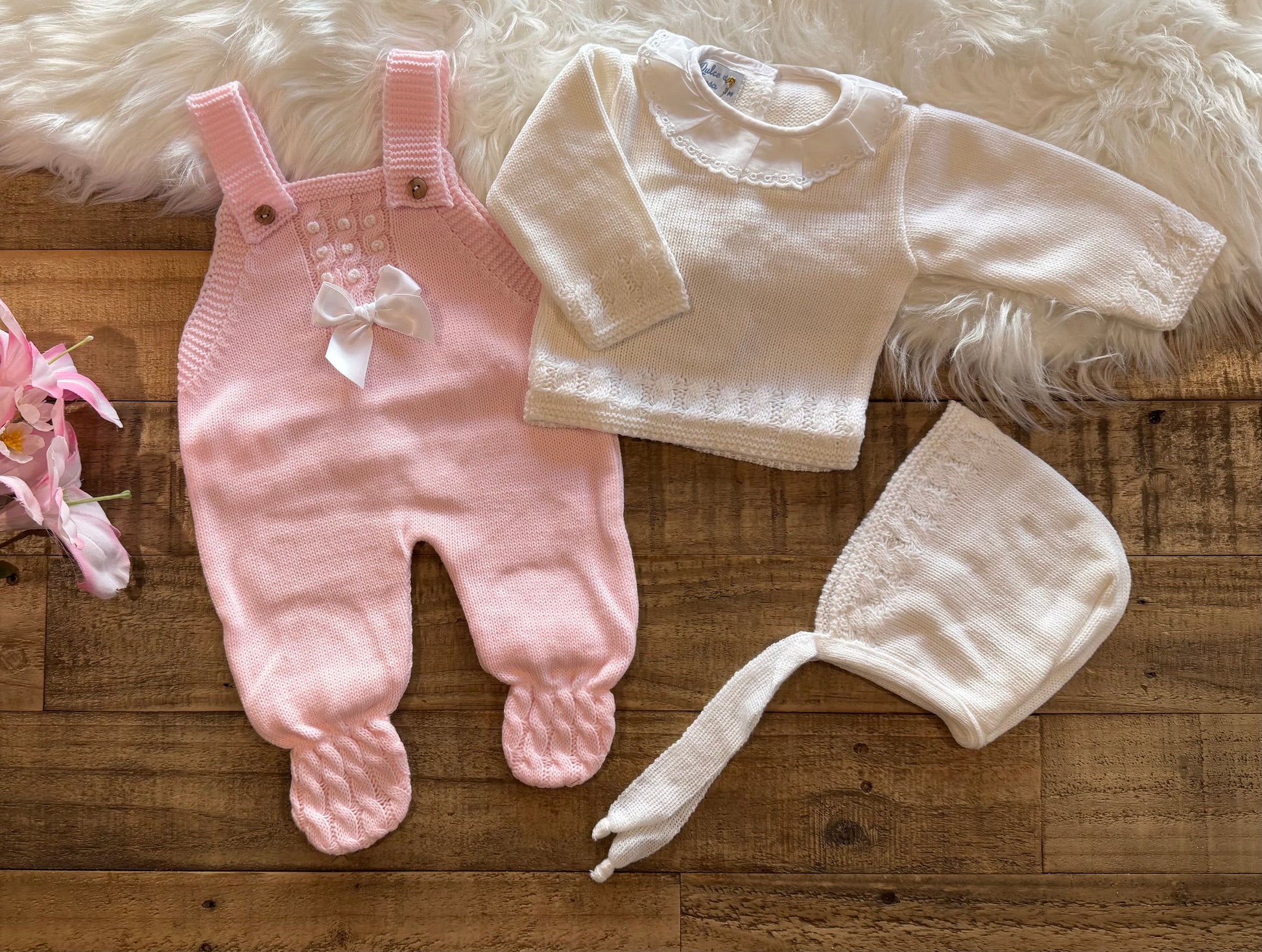 Welcome your baby with this soft, breathable 3-piece set featuring a knitted romper with button straps and pom-pom or bow accents, plus a matching long-sleeved top. Perfect for playdates or everyday wear.
