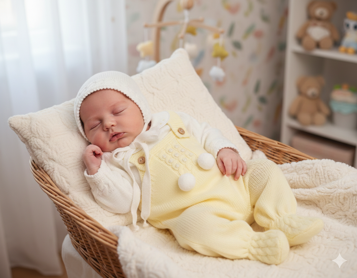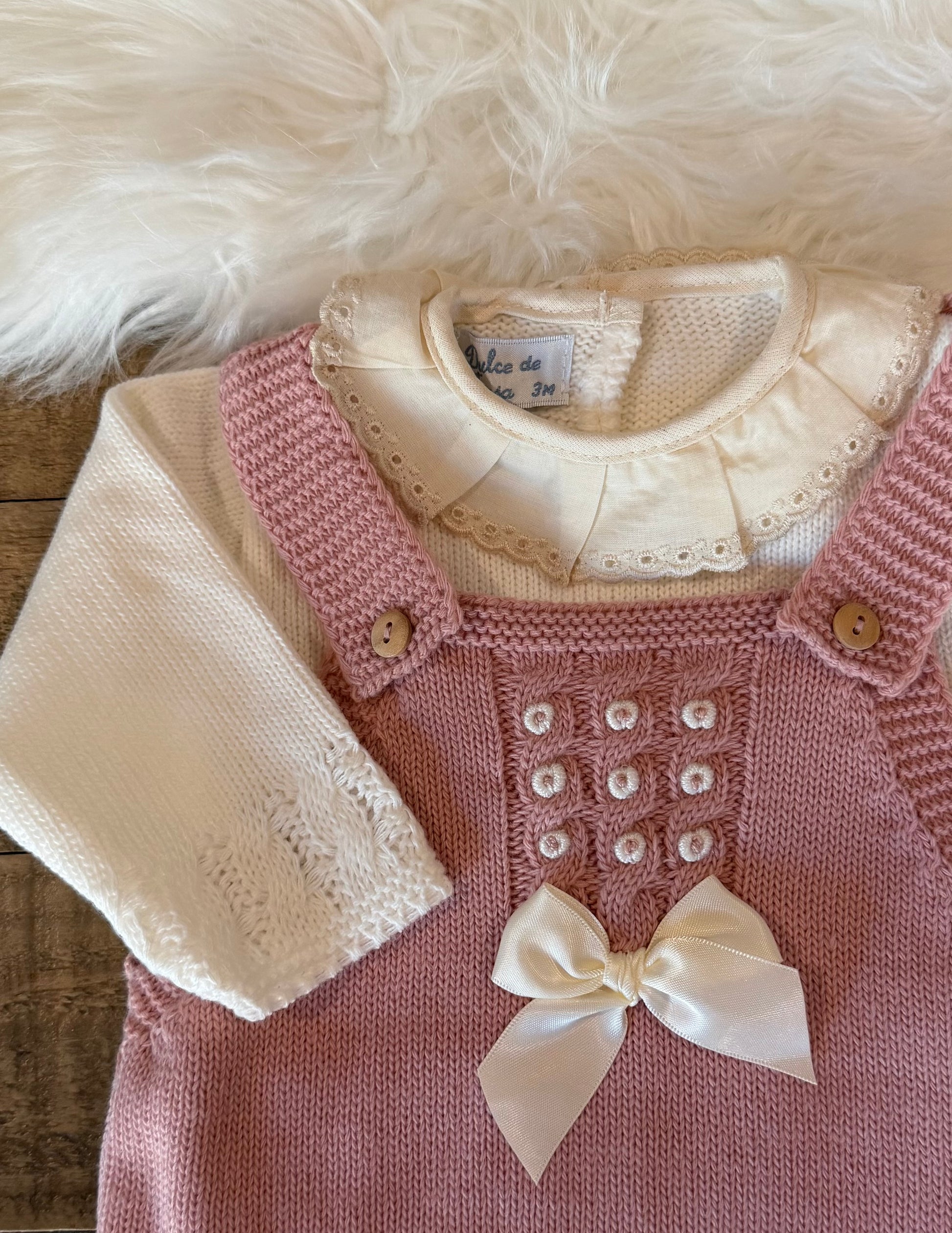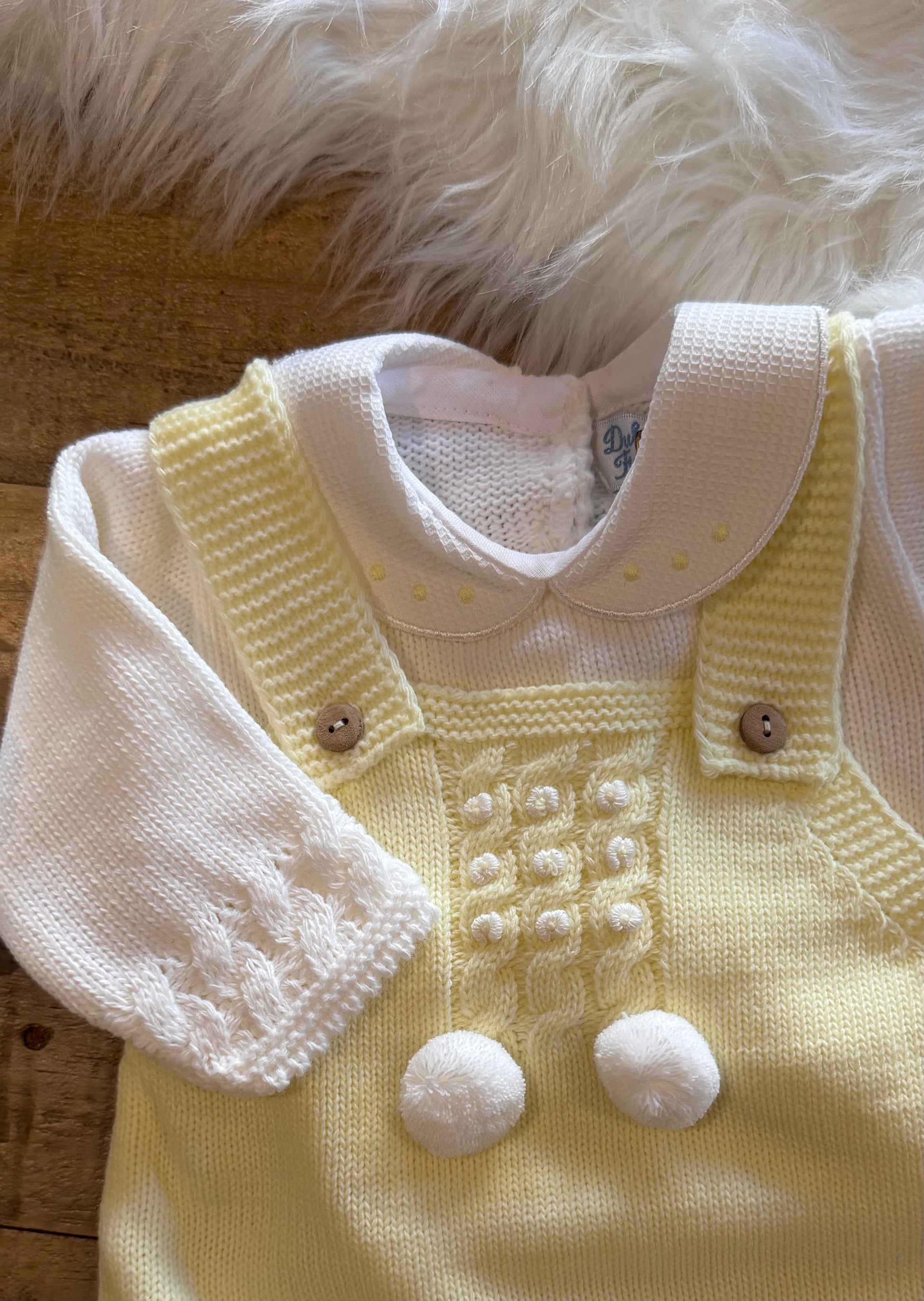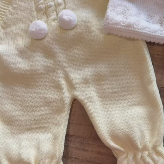 Welcome your baby with this soft, breathable 3-piece set featuring a knitted romper with button straps and pom-pom or bow accents, plus a matching long-sleeved top. Perfect for playdates or everyday wear.