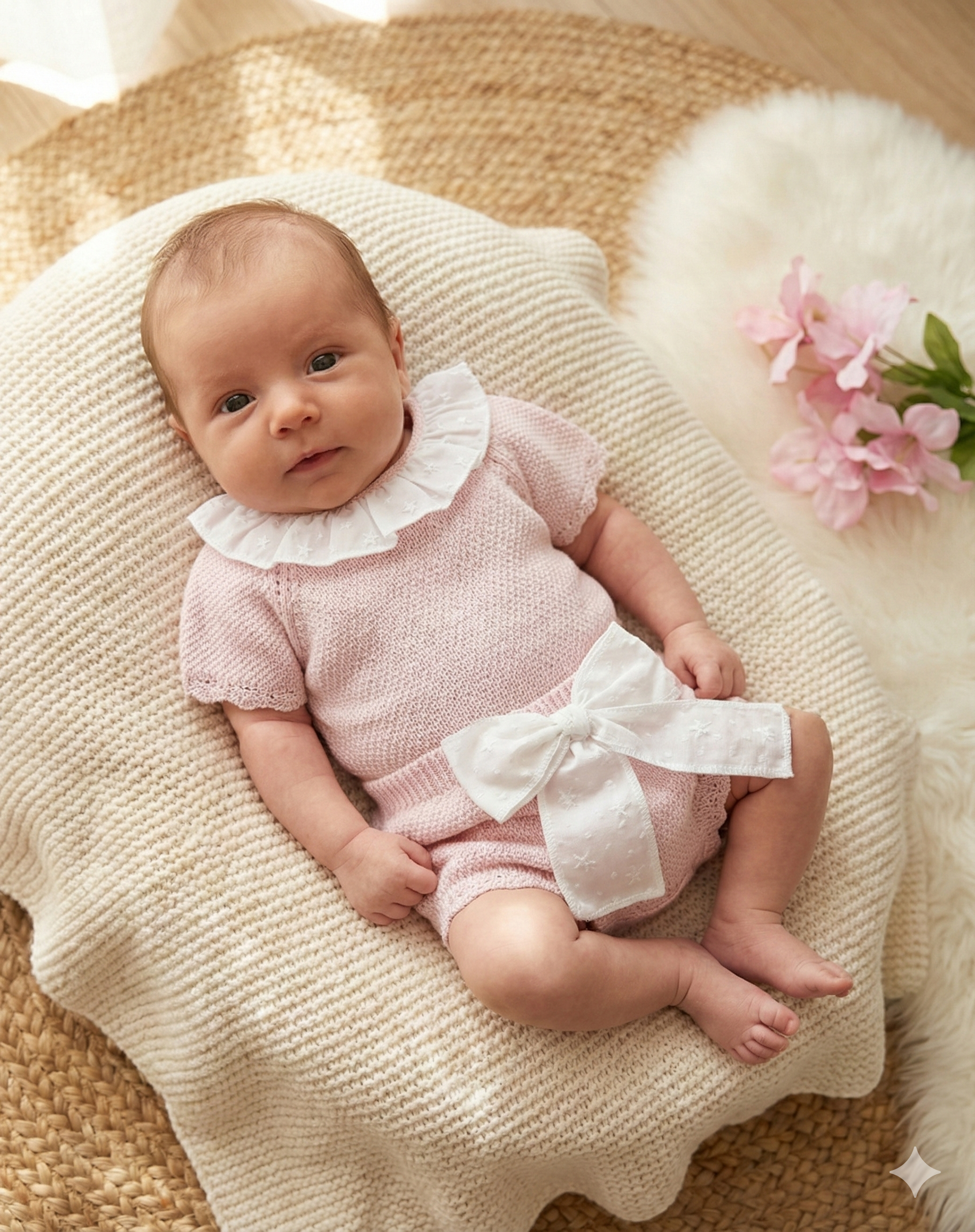 Dress your baby girl in classic elegance with this sweet 2-piece set from Dulce de Fresa, featuring delicate lace and timeless details.