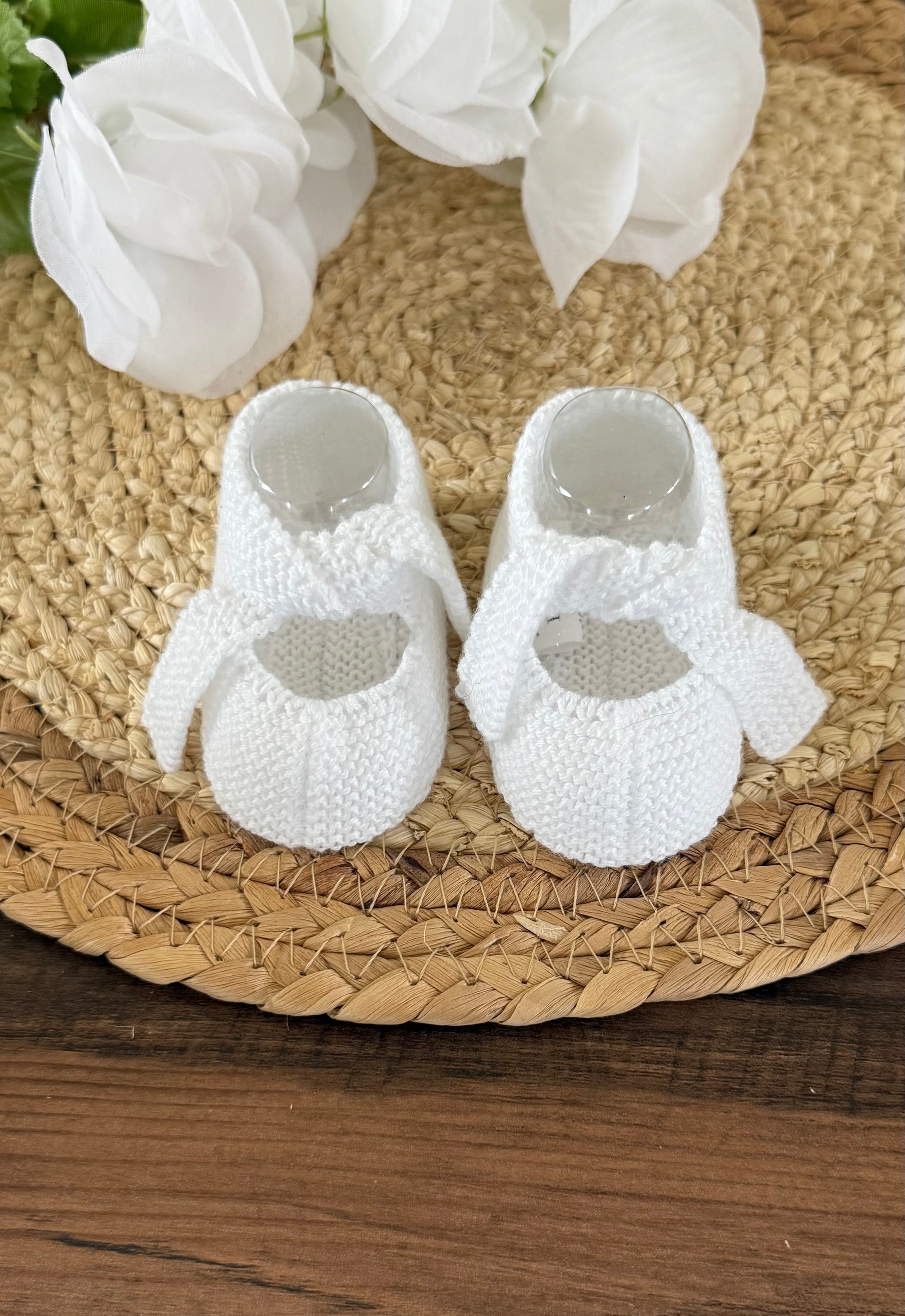 Keep your baby’s feet cozy with these soft knitted booties. Made from breathable cotton yarn, they feature a stretchy fit and delicate knit pattern for comfort and style, perfect for any season or occasion.