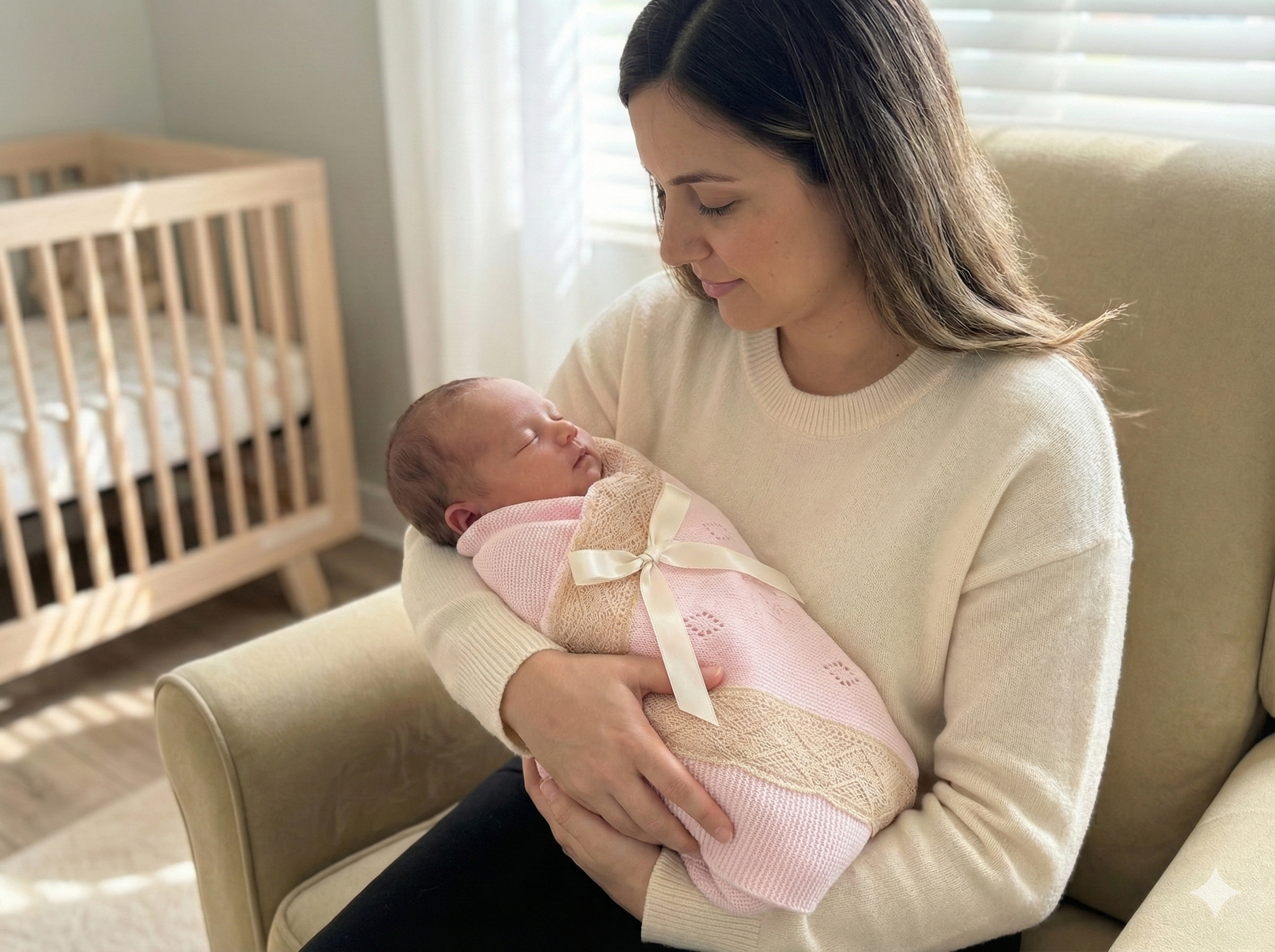 Wrap your baby in cozy elegance with this soft, breathable knitted receiving blanket from Spain. Featuring delicate lace trim, it’s perfect for home, outings, or special occasions. A timeless keepsake made with care.